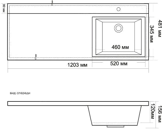 Мебельная накладная раковина Mixline Andrea Cosmos 120x48 R - арт. 543030.