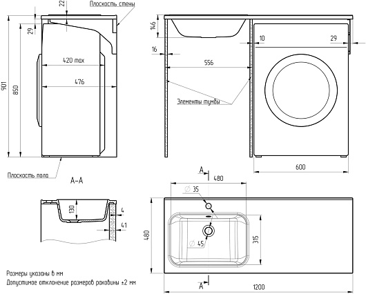 Мебельная накладная раковина Mixline Билл 120x48 L - арт. 553534.