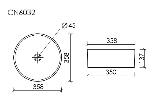 - Умывальник чаша накладная круглая (цвет Чёрный Матовый) Element 358*358*137мм.