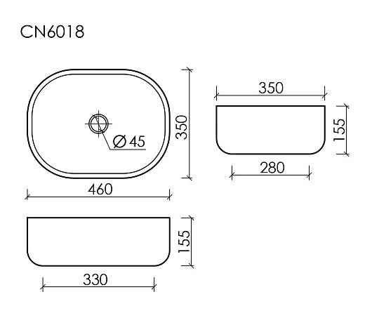 - Умывальник чаша накладная овальная Element 460*350*155мм.