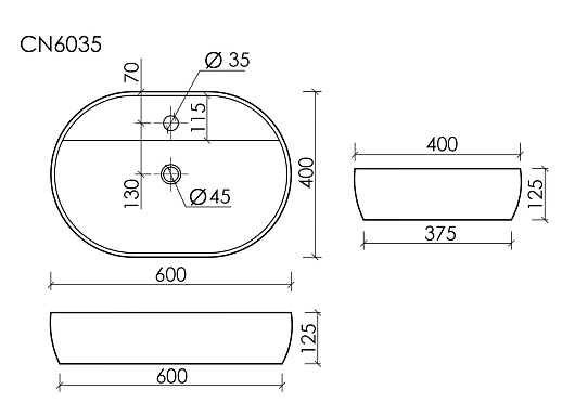 - Умывальник накладной Element 600*400*125мм, с плоскостью под смеситель.