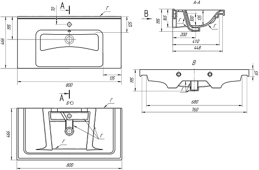 - Размер (ШxВxГ): 800x195x466 мм.