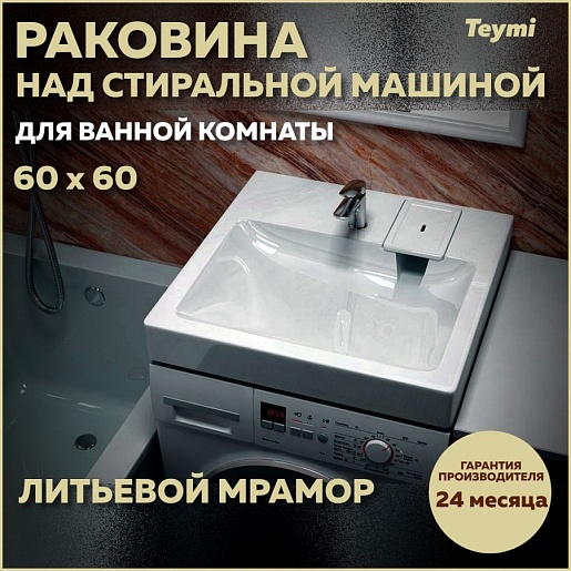 - Раковина над стиральной машиной Teymi Kati Pro T50410 60х60, белая.- Возможна установка над стиральной машиной.