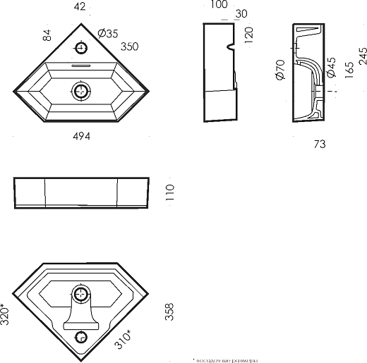 Mixline Мебельная раковина Sanita Luxe Line 70 угловая белая