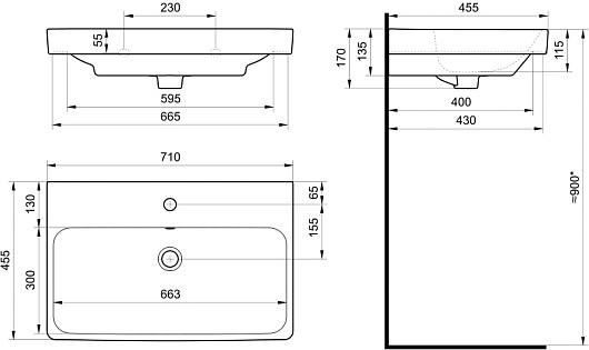 - Одно отверстие под смеситель.
