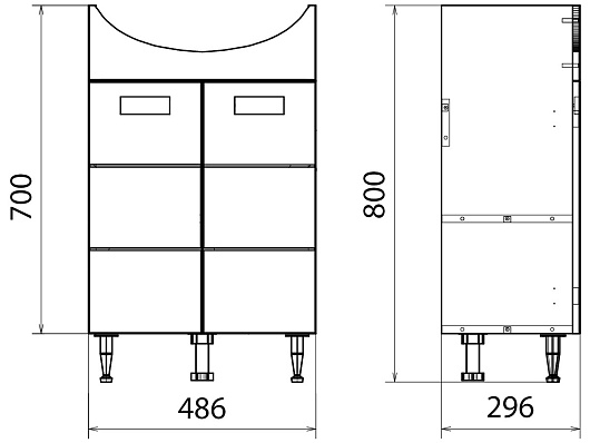 - Тумба под раковину напольная Руно 50: 2 распашных фасада