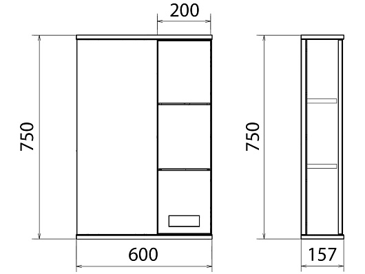 - Зеркало-шкаф Руно 60: шкафчик, полочки.