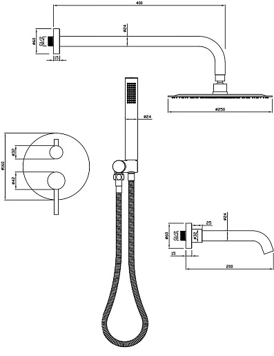 - Размер верхнего душа: 25 см.