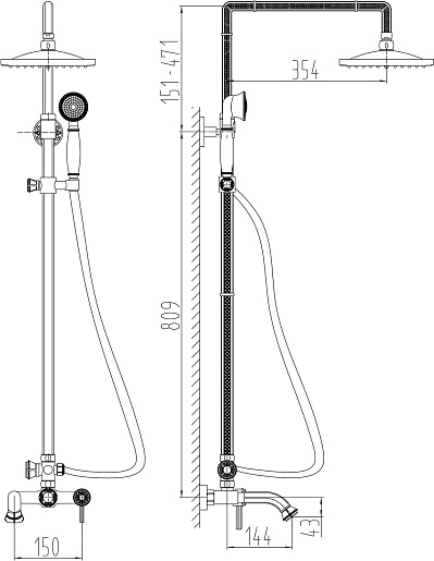 - Ручной и верхний душ из латуни.