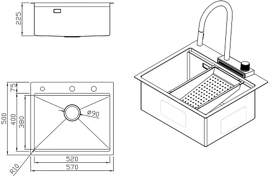 В комплекте: мойка, сифон со слив-переливом, смеситель, коландер.