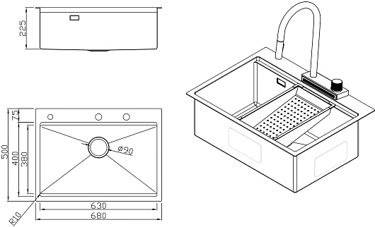 В комплекте: мойка, сифон со слив-переливом, смеситель, коландер.
