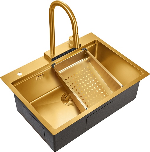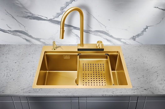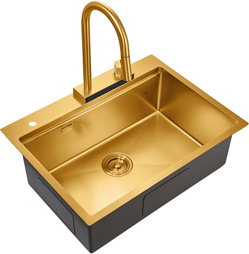 Milacio Мойка кухонная Denia 68 Steel со смесителем золото
