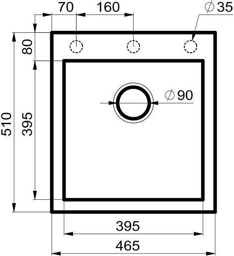 - 3 размеченных отверстия для смесителя.