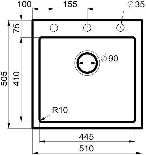 В комплекте: мойка, сифон со слив-переливом, коронка.