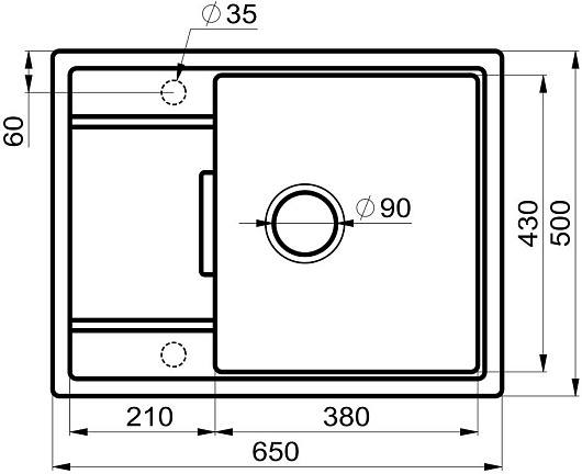 - 3 размеченных отверстия для смесителя.
