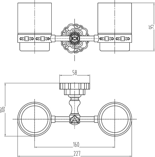 Двойной стакан для зубных щеток Milacio Villena MC.904.BBR.