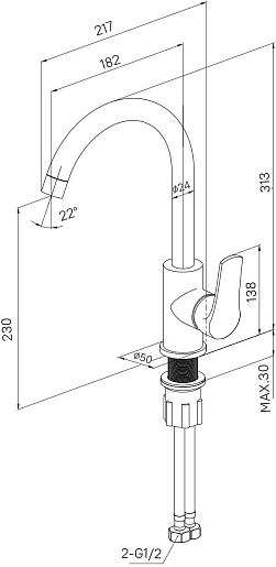 - Гибкая подводка из нетоксичной EPDM резины в оплетке из нержавеющей стали, М10 - G1/2.