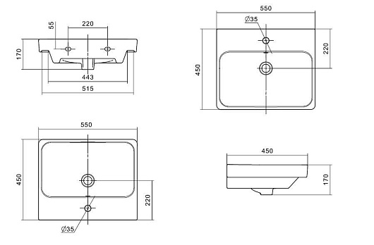 Умывальник мебельный Santek "Адриана" 55 см , керамика, белый