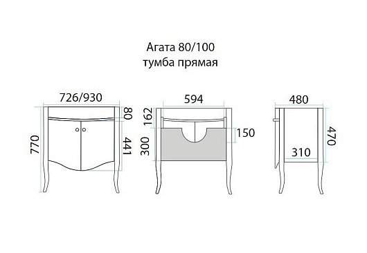 - Агата 80 тумба прямая, два распашных фасада, доводчики, фурнитура-бронза.