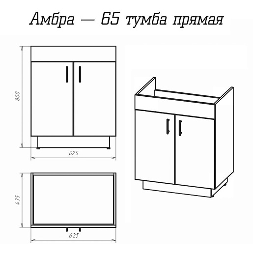 Тумба для умывальника Амбра 65