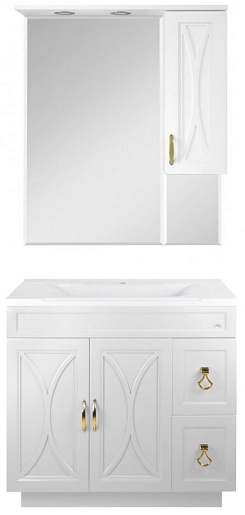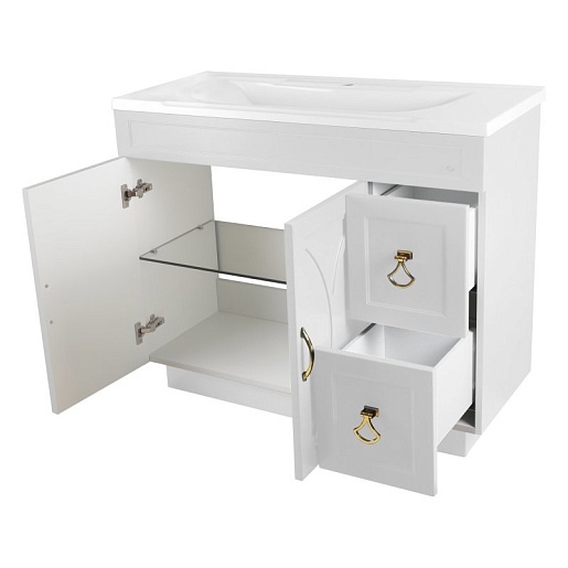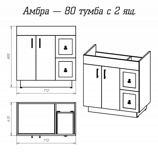 - тумба под раковину Амбра 80: 2 распашных фасада, ящики, фурнитура-золото, доводчики.