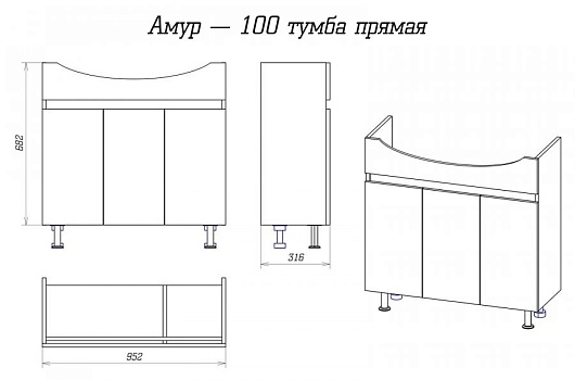 Тумба для умывальника Амур 100 прямая