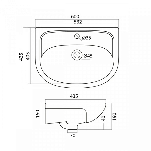 - тумба под раковину Амур 60: распашной фасад, ящики.