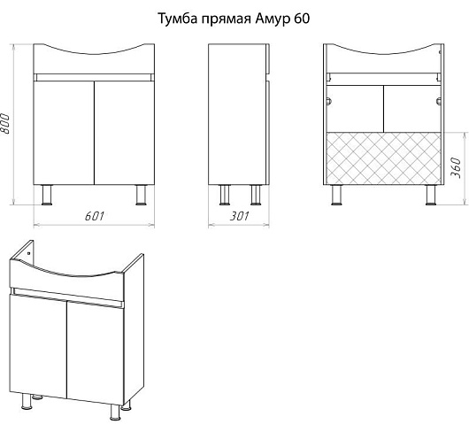 - тумба под раковину Амур 60: 2 распашных фасада.