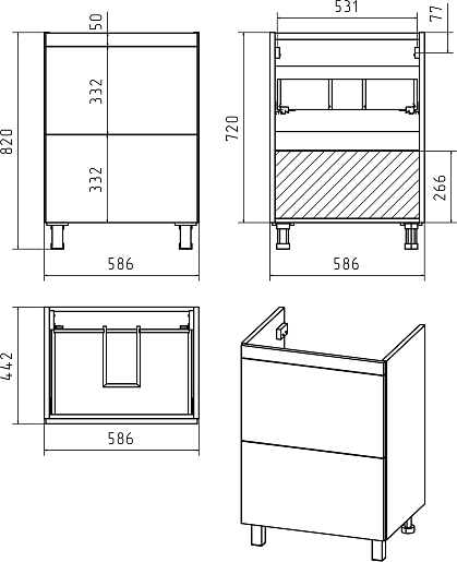 - 1 дверца, 1 открытая полка.