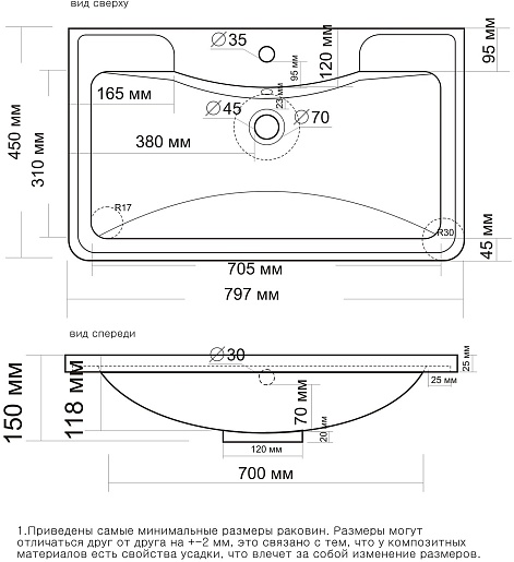 - Раковина из литьевого мрамора.