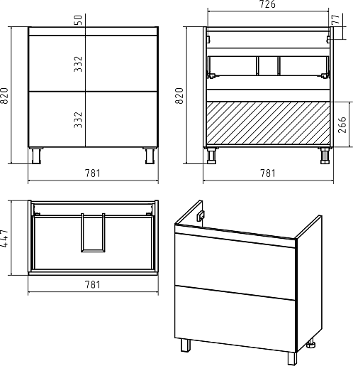 В комплекте: тумба, раковина, зеркальный шкаф, ножка (4 шт.), комплект креплений.