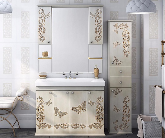 Misty Мебель для ванной Бабочка 120 бежевая патина