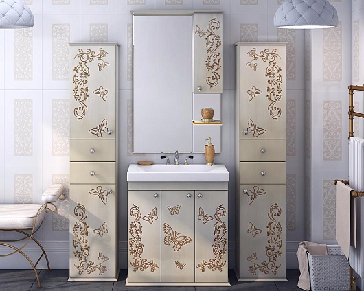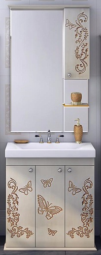 Зеркальный шкаф Бабочка 75 R бежевая патина