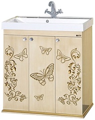 - Тумба с раковиной Бабочка 90, арт. Л-Баб01075-033Пр: 3 распашные дверцы, золотистые ручки с кристаллом, механизм доводчика, мебельная раковина D 4019 90, доломит.