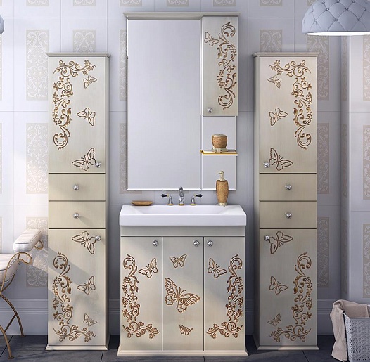 Зеркальный шкаф Бабочка 90 R бежевая патина
