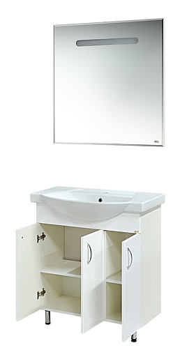 При выборе сантехники отдельного внимания требуют комплекты, выполненные в едином стиле. Мебель для ванной “Балтика 80” – это набор, который состоит из зеркального шкафа, умывальника и тумбы для него. Лаконичный белый цвет отлично впишется в дизайн любого интерьера, а зеркальная поверхность зрительно расширит пространство даже малогабаритного санузла.