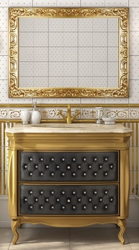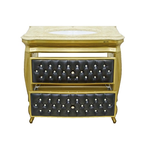 Тумба для умывальника Bogema 100 черная кожа/золото