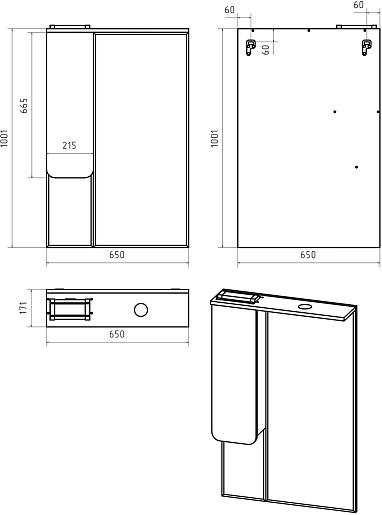 В комплекте: тумба, раковина, зеркальный шкаф, ножка (4 шт.), комплект креплений.