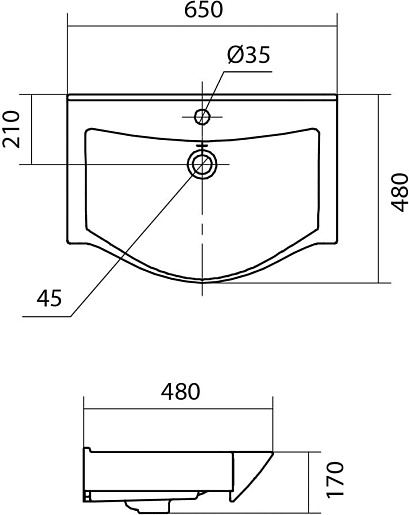 - Керамическая раковина со слив-переливом.