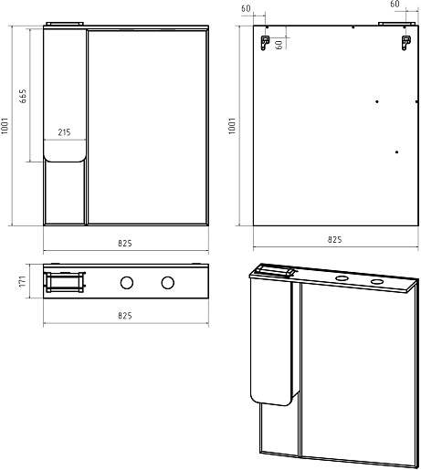 В комплекте: тумба, ножка (4 шт.), раковина, зеркальный шкаф, комплект креплений.