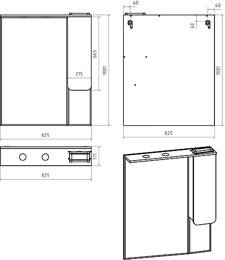 В комплекте: тумба, ножка (4 шт.), раковина, зеркальный шкаф, комплект креплений.