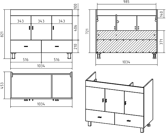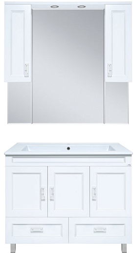 Комплектация: тумба, раковина, зеркальный шкаф, комплект креплений, ножка (4 шт.).