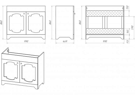 - Тумба под раковину Элис 100, арт. Л-Эли01100-033Пр: распашная дверца - 2 шт.