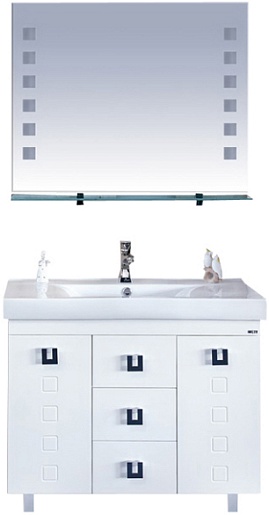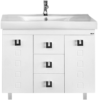 - тумба под раковину: 2 распашные дверцы, 3 выдвижных ящика, 5 металлических ручек, комплект опорных ножек и крепления