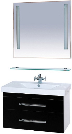 Комплектация: зеркало с двумя встроенными светильниками, стеклянная полочка.