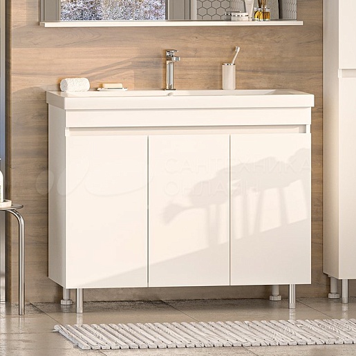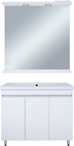 В комплекте: тумба, раковина, зеркало, ножка (4 шт.), комплект креплений.