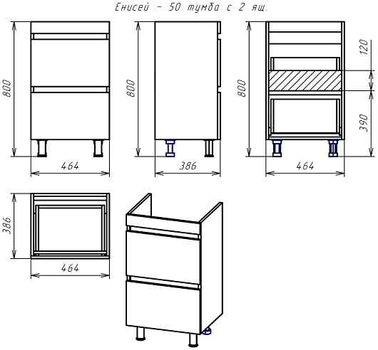 Тумба с раковиной Misty Енисей 50 2 ящика - арт. Э-Ени01050-0112Я / S-UM-MOD50/1.