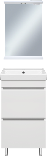 В комплекте: тумба, раковина, зеркало, ножка (4 шт.), комплект креплений.