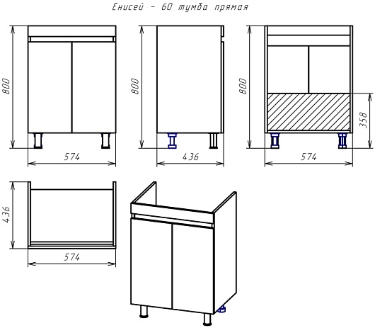 Тумба с раковиной Misty Енисей 60 - арт. Э-Ени01060-012 / S-UM-COM60/1-w.