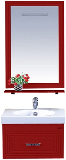 Комплектация: зеркало для ванной в раме с подсветкой и полкой.